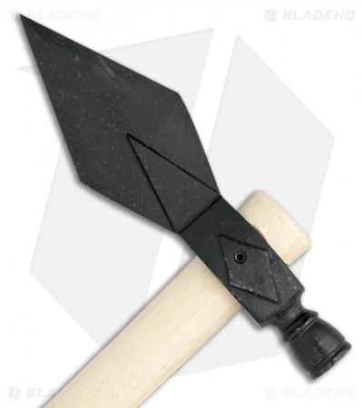 The Cold Steel Diamond Spontoon Hawk is built with a drop forged 1044 carbon steel diamond-shaped axe head in a dark finish. The wooden handle is 22″ long American Hickory.