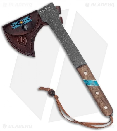 The Condor Blue River Tomahawk is an excellent tool for the outdoorsman. It’s got a walnut wood handle with a stripe of turquoise (which kind of looks like a river, and it just happens to be blue). It’s built with full-tang construction, so it’s super tough. It also comes with a beautiful premium veg tan leather sheath.