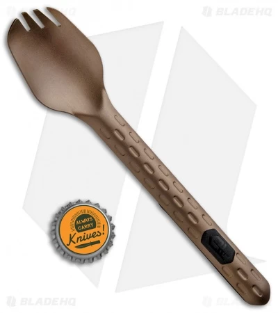 The Gerber Devour Multi-Fork was built with 9 functions to manage all of your camp cooking, eating, and cleaning needs. This Devour model comes in a bronze finish. It offers a 2 piece design that snaps together for convenient portability. Get an all-in-one eating tool with the Gerber Devour.
