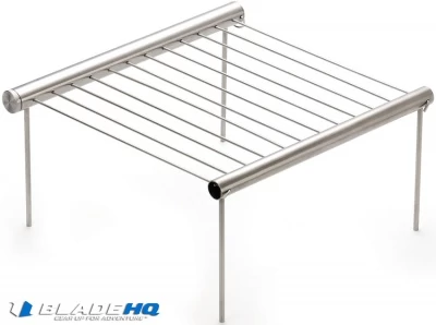 Durable stainless construction. Folds down and fits inside stainless steel tube for easy and compact storage. Measures 11.4″ x 0.9″ when packed and 9.1″ x 10.2″ when assembled. Includes: one thick tube with a stopper, one thin tube with a cleaning groove, two outer grill rods with hooks and threads, ten grill rods, and four grill feet. Dishwasher safe. Weighs 19.8 oz. Boxed with hanging tab. Includes grill only.