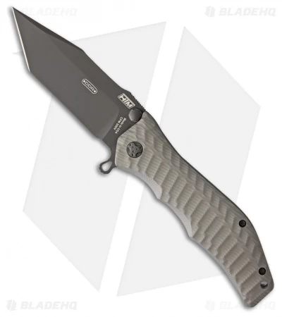 The HTM Gun Hammer is a spring assisted knife modeled after Darrel Ralph’s custom design. It has an ergonomic tactical (ETAC) grip handle, 3D machined from aircraft grade aluminum with a military Type III hard coat. The blade is premium S30V stainless steel with a DLC finish. Item comes with a padded black nylon pouch.