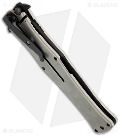 This assisted opening Madd Maxx knife from Darrel Ralph is dressed up with a premium Damascus steel blade. The bayonet style blade with its flipper blade guards and dual thumb studs makes deploying the blade easy. The 6Al4V titanium handle has a 3D machined carbon fiber onlay (front) and frame lock on back. The pivot has a swirl button or coin, adding a nice touch to this classy and iconic knife. Comes in a DDR padded black nylon pouch.