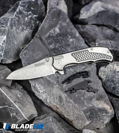 The Rick Hinderer designed Kershaw Agile offers a practical and versatile build with three interchangeable backspacers, each equipped with a different tool: a lanyard attachment, a bottle opener, or a screwdriver tip. This sturdy assisted opening knife features an 8Cr13MoV stainless steel blade with a stonewashed finish, flipper opener, thumb studs, and jimping on the spine. Its stainless steel frame lock handle has a grip enhancing “diamond plate” texture and a two-tone stonewashed/BlackWash finish. The knife comes outfitted with a 3-position pocket clip.