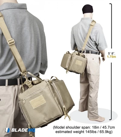 - Removable ammo tote has 2 padded zipper-closed pockets that will fit most handguns (sized to fit the 5″ Government 1911)