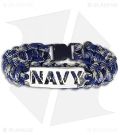 Single Tied Paracord Survival Bracelet W/ Navy Plate (Blue & Yellow)