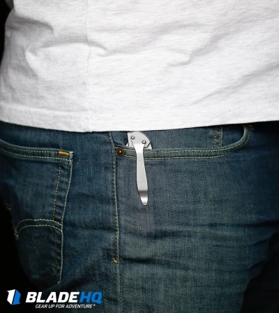 - Bead-blasted Wharncliffe blade made from Sandvik 14C28N steel.