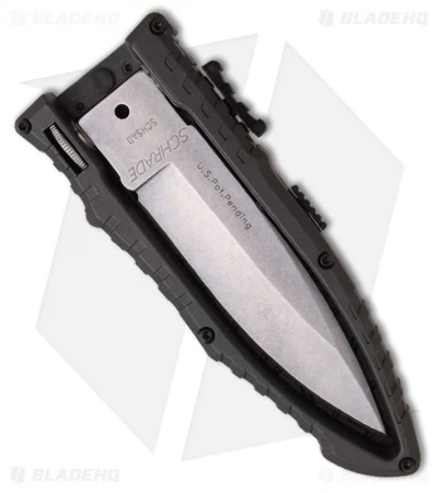 The Schrade Viper series Side Assist knife has a unique opening action that fires the blade out the side of the handle. The back side of the handle has a hole to nudge the blade, which activates the assisted opening mechanism. To release the blade simply slide the top mounted button and return blade to the closed position. There is a safety as well, although it is stiff. The Viper Side Assist knife has a tip-down carry pocket clip.