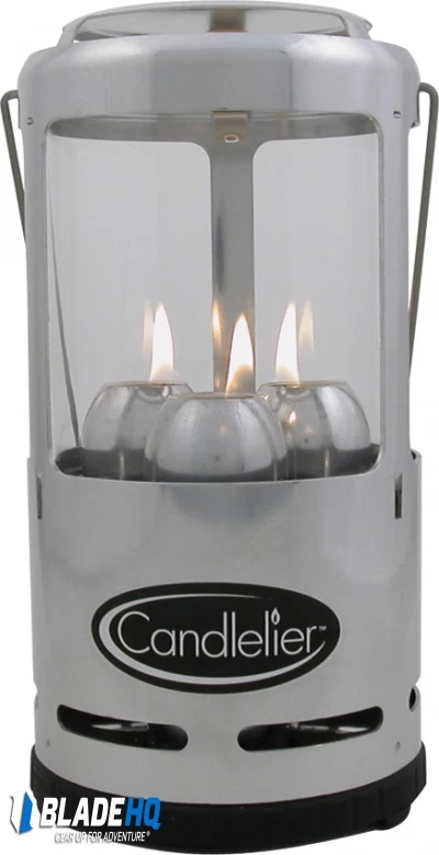 8 1/4″ high. Polished aluminum construction with sturdy 3-legged base to stabilize the lantern on uneven surfaces. Stainless handle for hanging or carrying. Spring-loaded candle tube keeps the flame height constant, while a small viewing window shows how much candle remains. The heat shield provides a stove-like surface to boil small amounts of water, melt snow, or keep foods warm. Economical and safe to operate. No combustible fuels or complicated starting procedures. Useful for backpacking, camping, boating, at home, or for emergency lighting needs. For use with CDL10030 or CDL10033 candles (available separately).