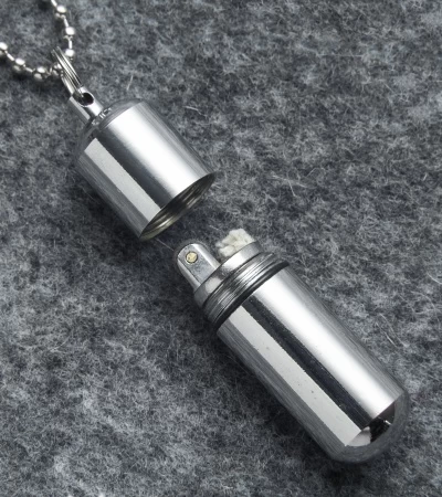 The Warhead Lighter is an awesome little lighter that won’t break the bank. It features a polished body, with split ring and chain for easy carry. The threaded top and o-ring ensure a tight seal, keeping moisture out and fuel in. The Warhead does not come with fuel, but uses standard liquid lighter fluid that is readily available. This lighter would be great in a bug-out survival bag or in your pocket on a keychain.